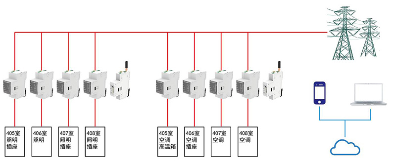 本系统采用导轨式三相智能电表搭配采集器,互感器以卡扣方式卡入,数据采集后通过无线GPRS网络传输至监控管理平台。