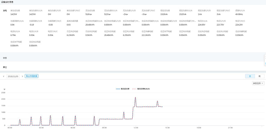 实时数据包括:有功功率、无功功率、视在功率、功率因数、总正向总电能、总反向总电能、电压、电流、日正向总电能、日反向总电能、总正向尖电能等。